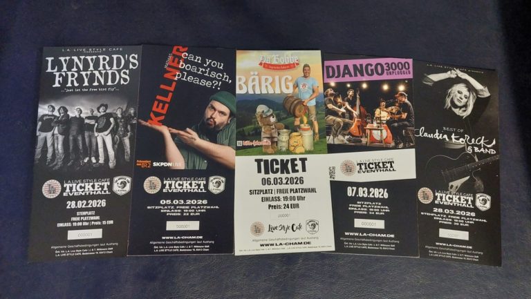 In unserer Eventhall finden regelmäßig Livekonzerte und Events mit bis zu 400 Zuhörern statt. Regionale und überregionale Bands und Künstler geben hier alles. Auf der großen Bühne mit Light-Show und sattem Sound performen Künstler aller Art: Metal- und Hardcorebands, Pop-Acts, Country- und Bluesformationen, Cover- und Tributebands sowie Comedians.