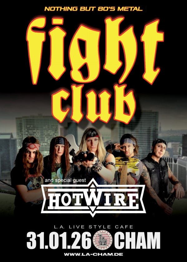 Eine aufregende Band mit gefährlichem Namen verkörpert aktuell wie kaum eine zweite den Zeitgeist des 80’s Heavy Metal: in einer Show voller augenzwinkernder Nostalgie hauen die fünf Recken von Fight Club einen Genreklassiker nach dem anderen raus.