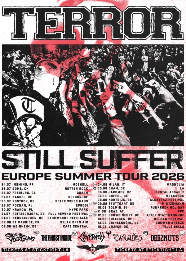 LA based powerhouse Terror have always been a name synonymous with hardcore. From their inception in 2002, the band have displayed a level of steadfast dedication unlike any other in the scene. Now with six studio albums, a series of live albums, splits, compilations and EP’s under their belts, the scene veterans are gearing up to release their latest full length ‘Total Retaliation’. The new album which is penned for a September 28th release date features Fit For An Autopsy’s Will Putney (Thy Art Is Murder, Body Count, Knocked Loose) in the producers chair and is the band’s first new material since last years ‘The Walls Will Fall’ EP. Clocking in at just under 30 minutes, ‘Total Retaliation’ is a succinct yet intense message of resistance within a world that can inspire little else. It’s a helping hand for the disillusioned and a firm middle finger to the authorities that are tearing apart society as we know it. As the band’s seventh full length studio album it serves as yet another example of why Terror have not only endured but remained at the top of their game for over 15 years.
